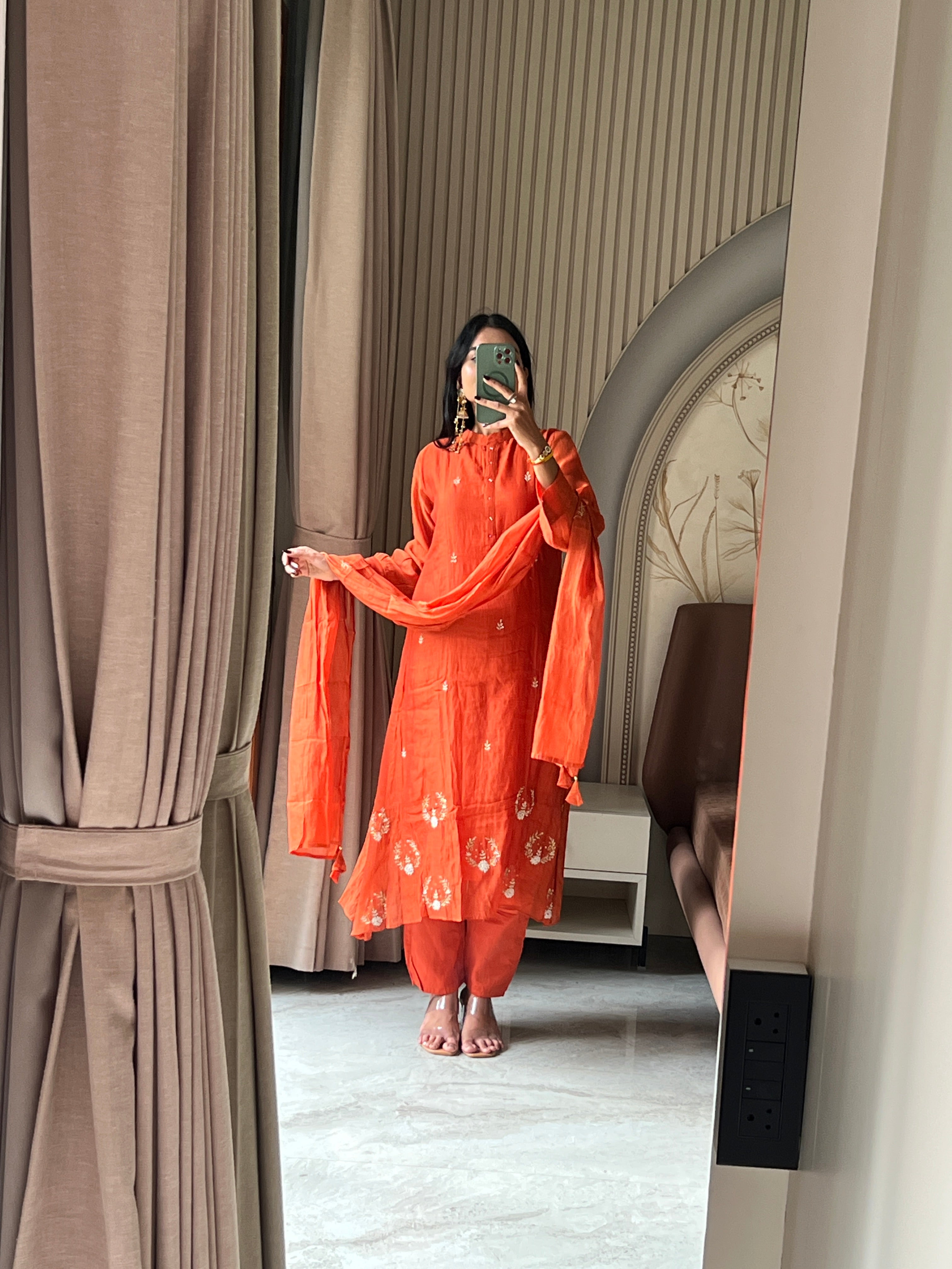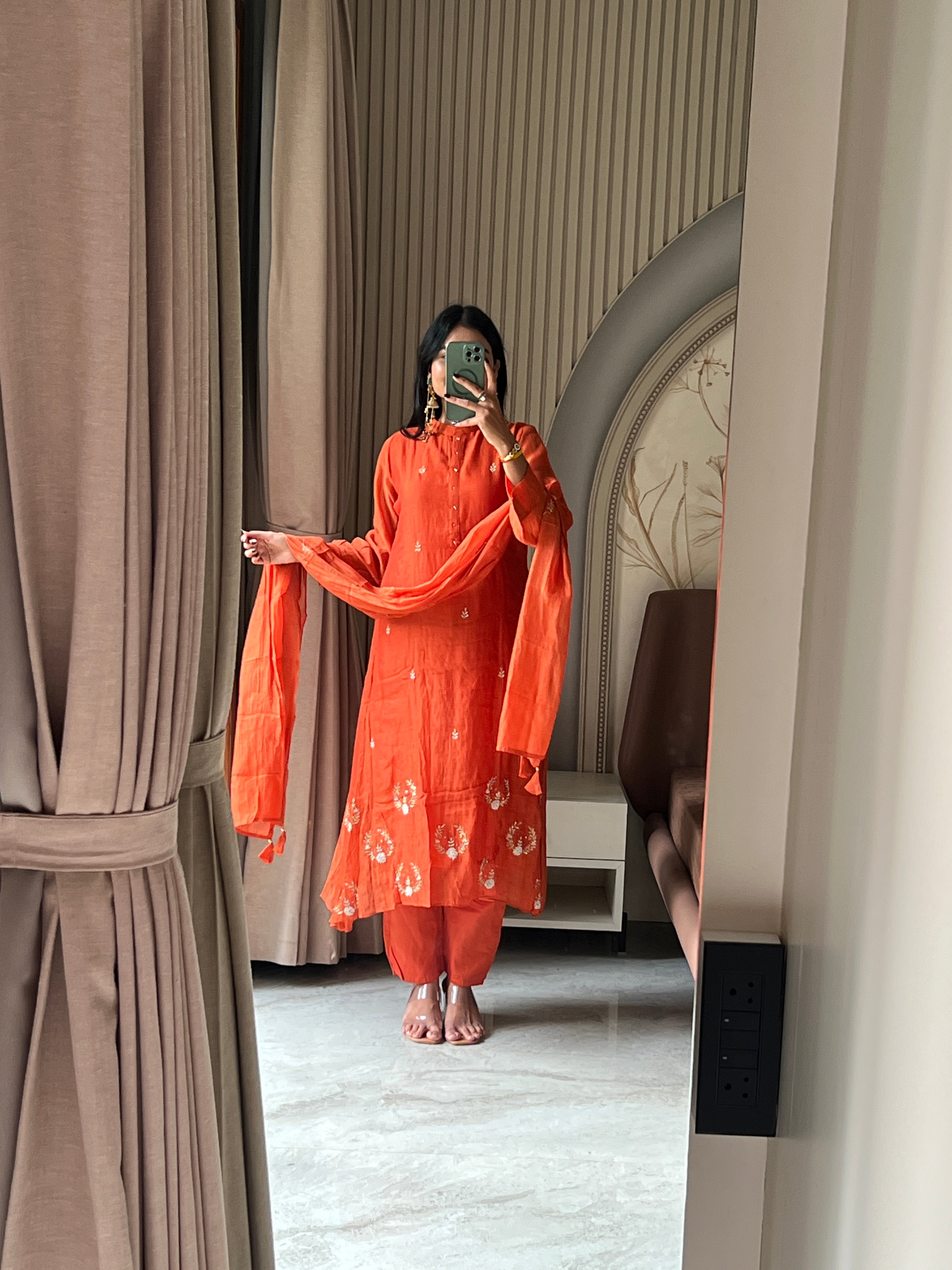 Mul chanderi suit set with beautiful Daman work Mul chanderi suit set with beautiful Daman work