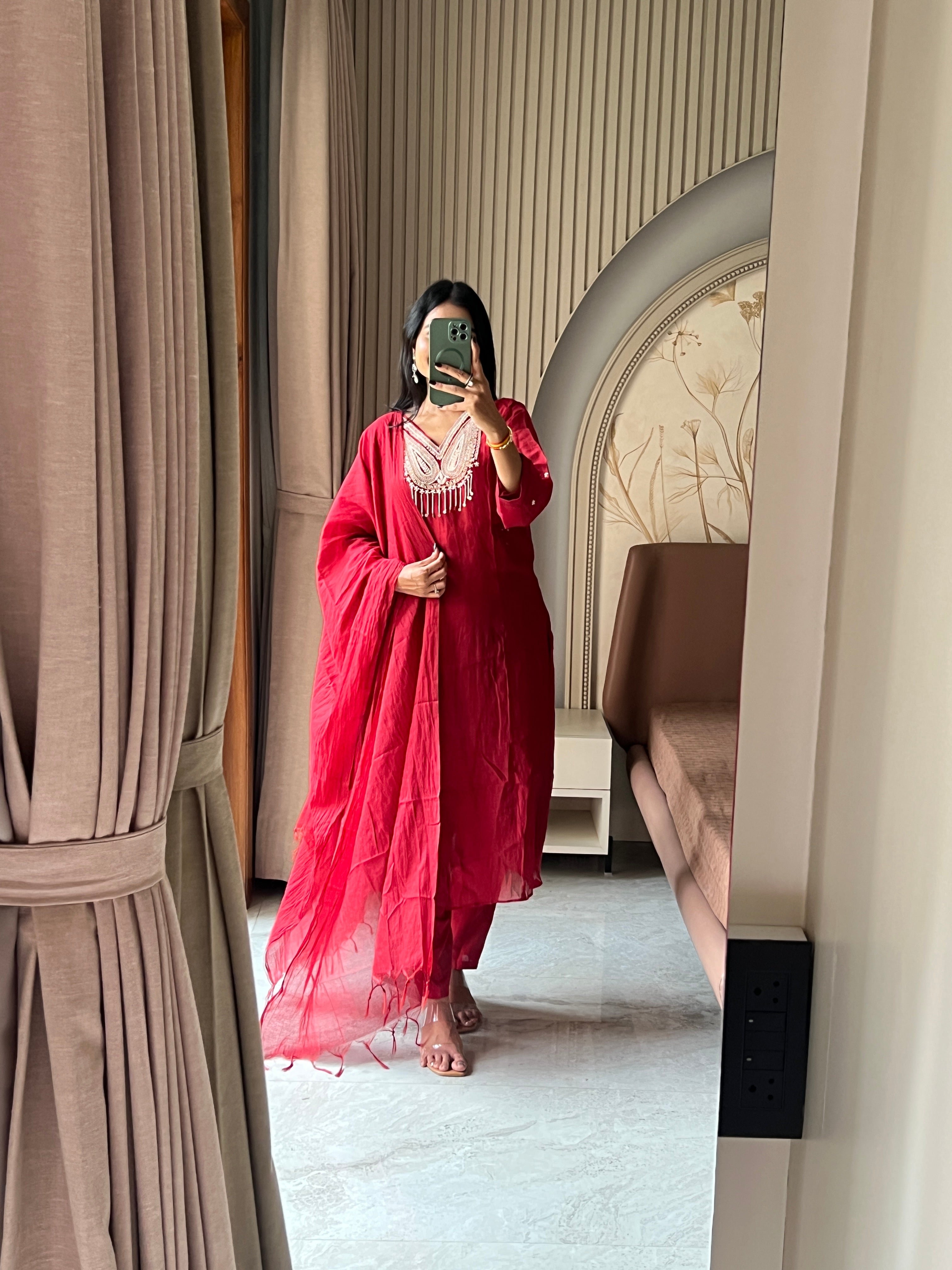 • Maroon Mul chanderi suit set