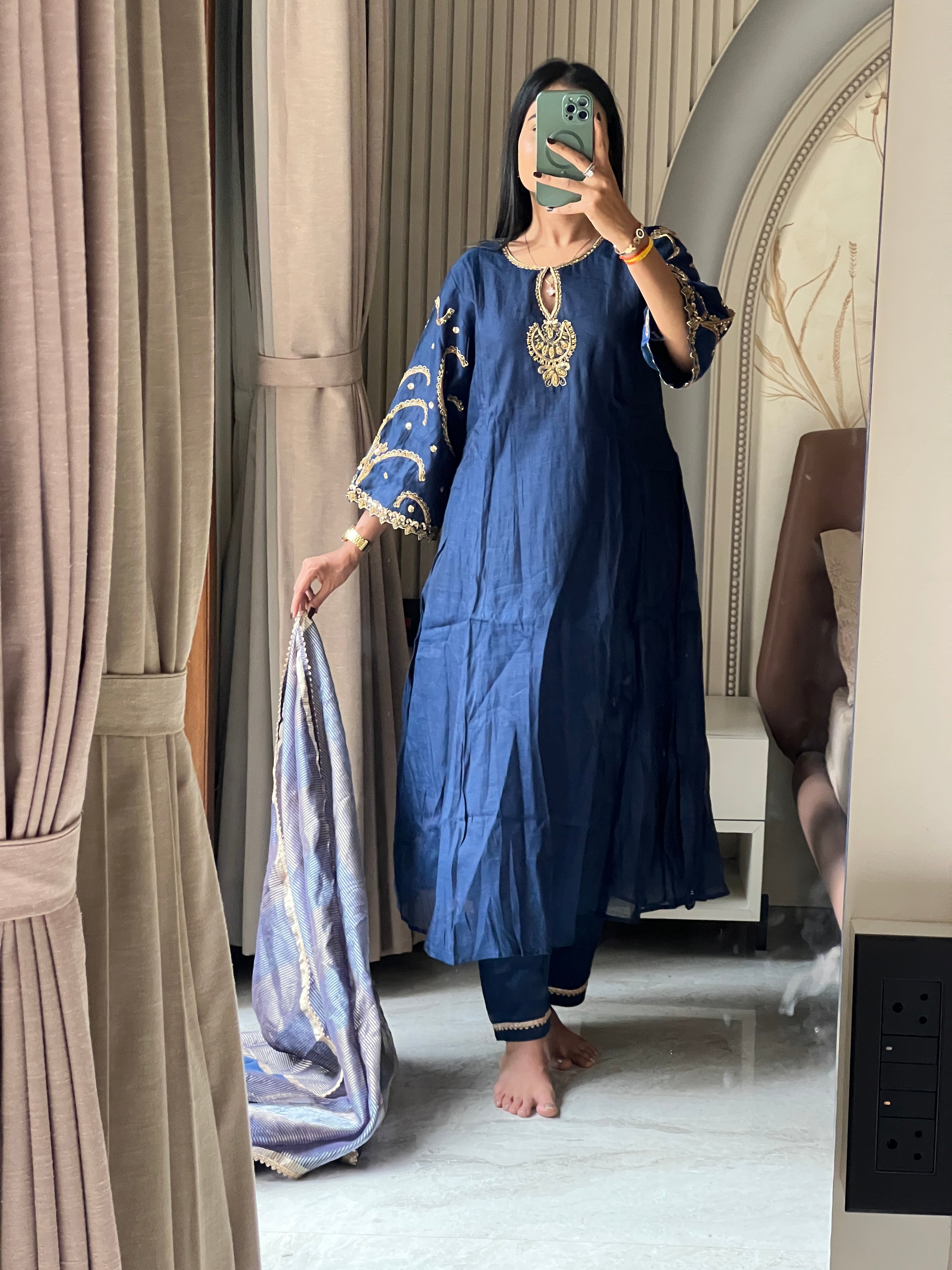 Blue jardosi work kurti set with striped dupatta Blue jardosi work kurti set with striped dupatta