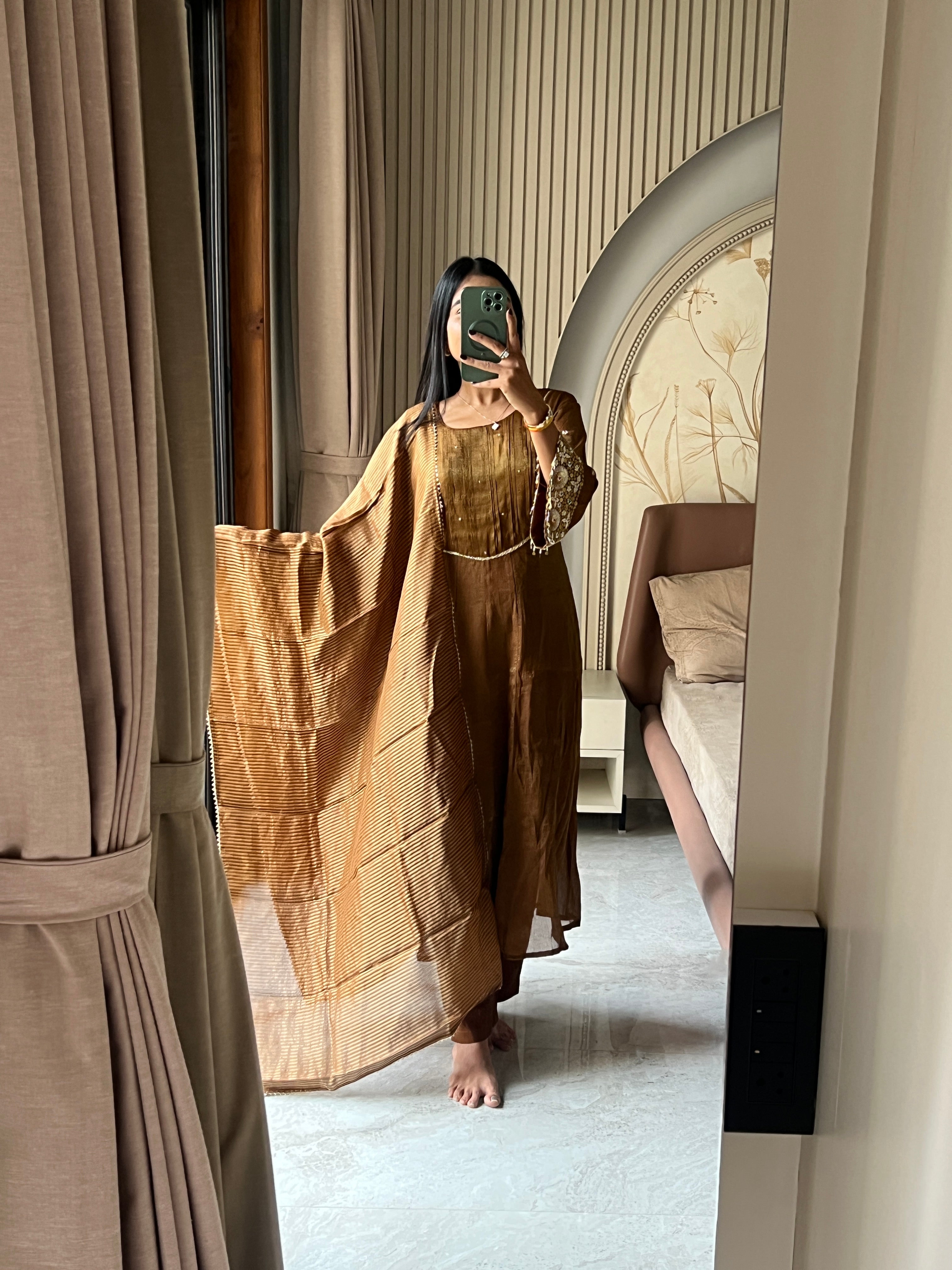 Copper metal sequence work kurti set Copper metal sequence work kurti set