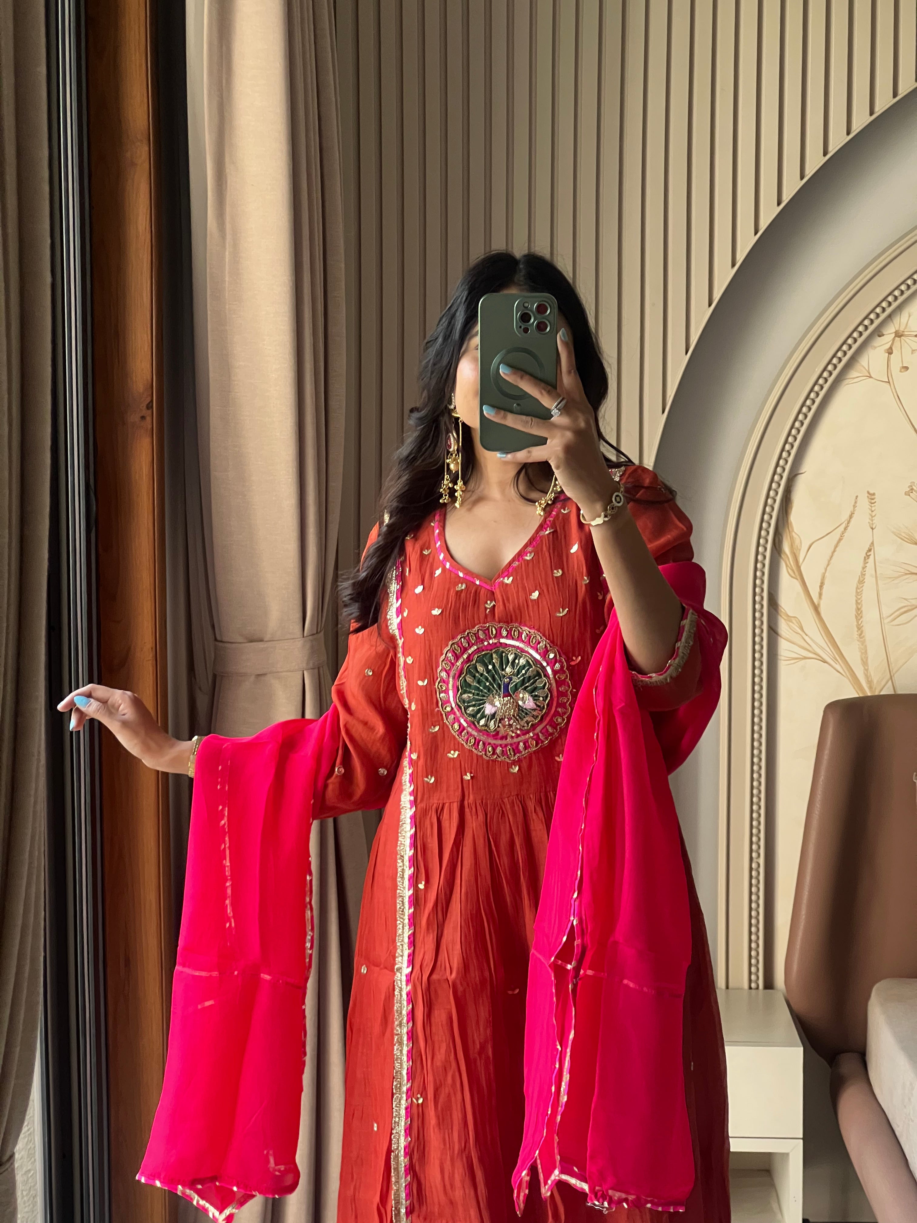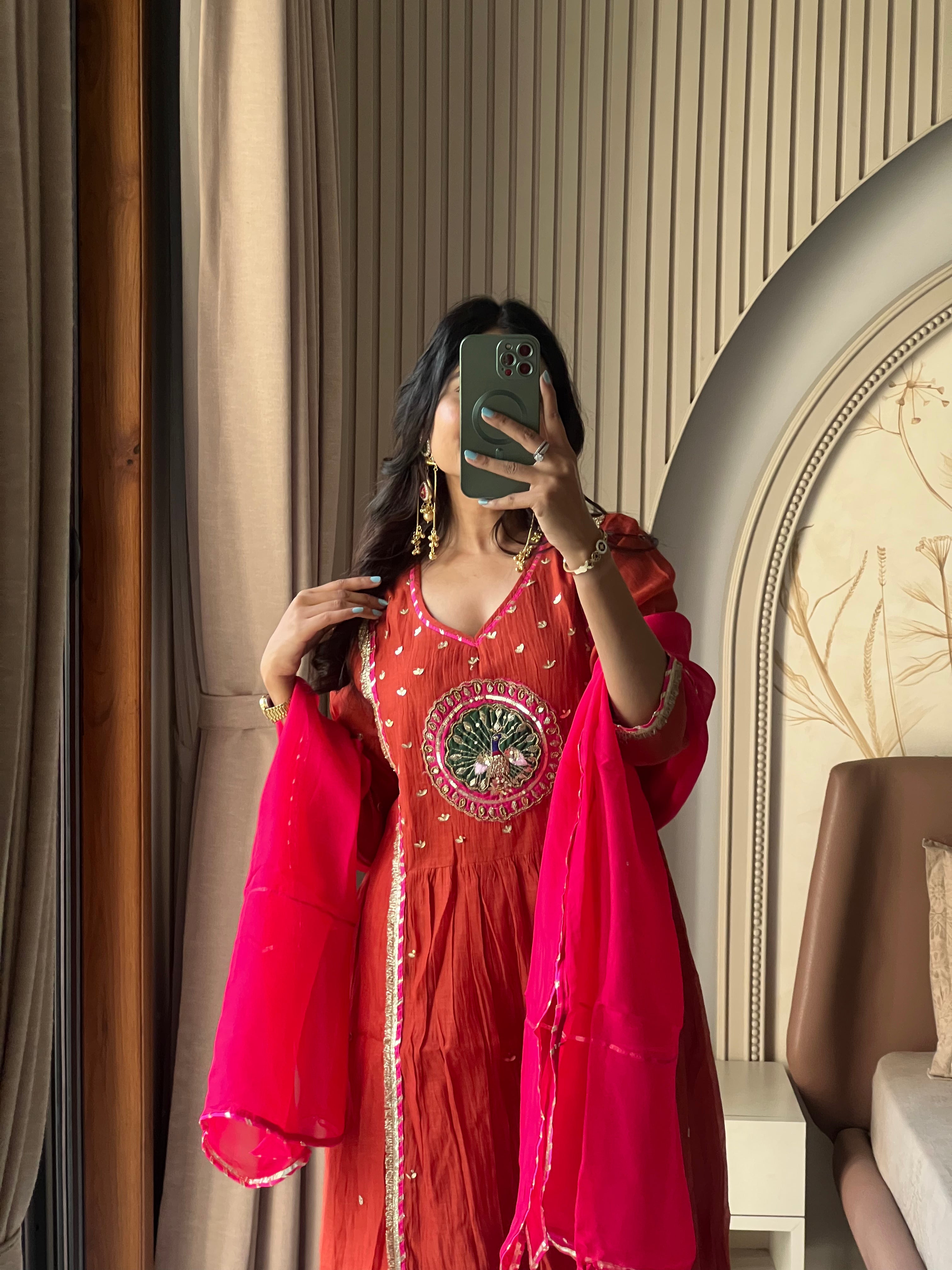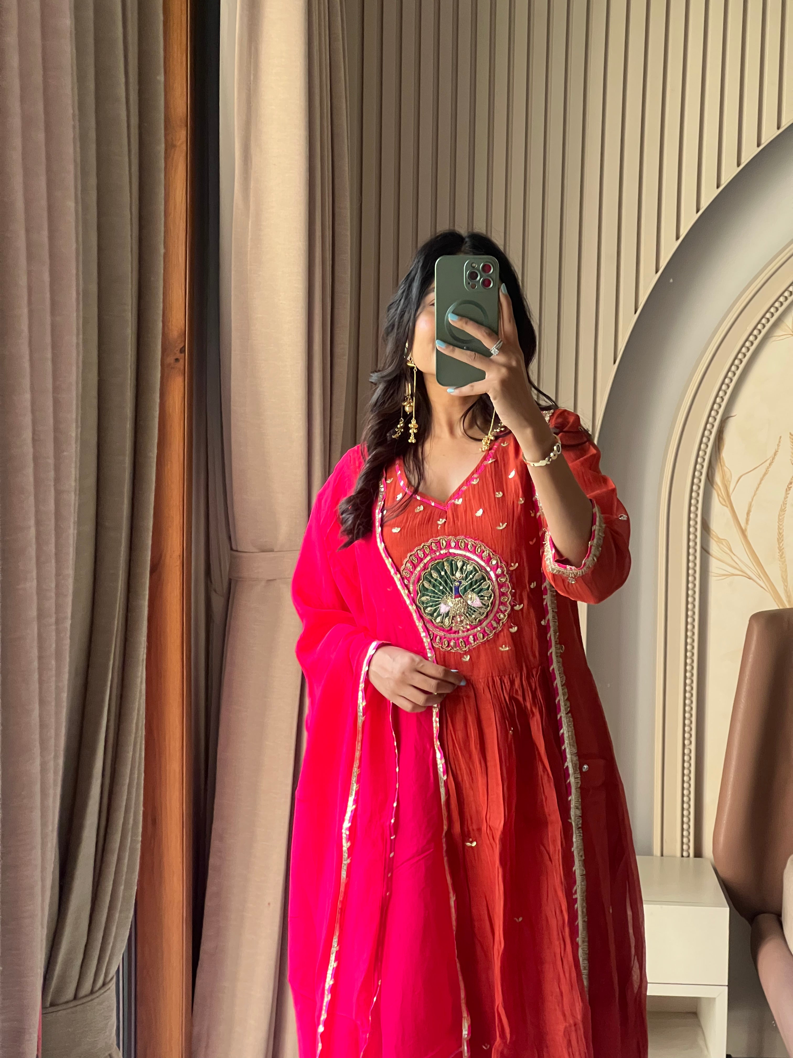 Orange Mul chanderi suit set Orange Mul chanderi suit set