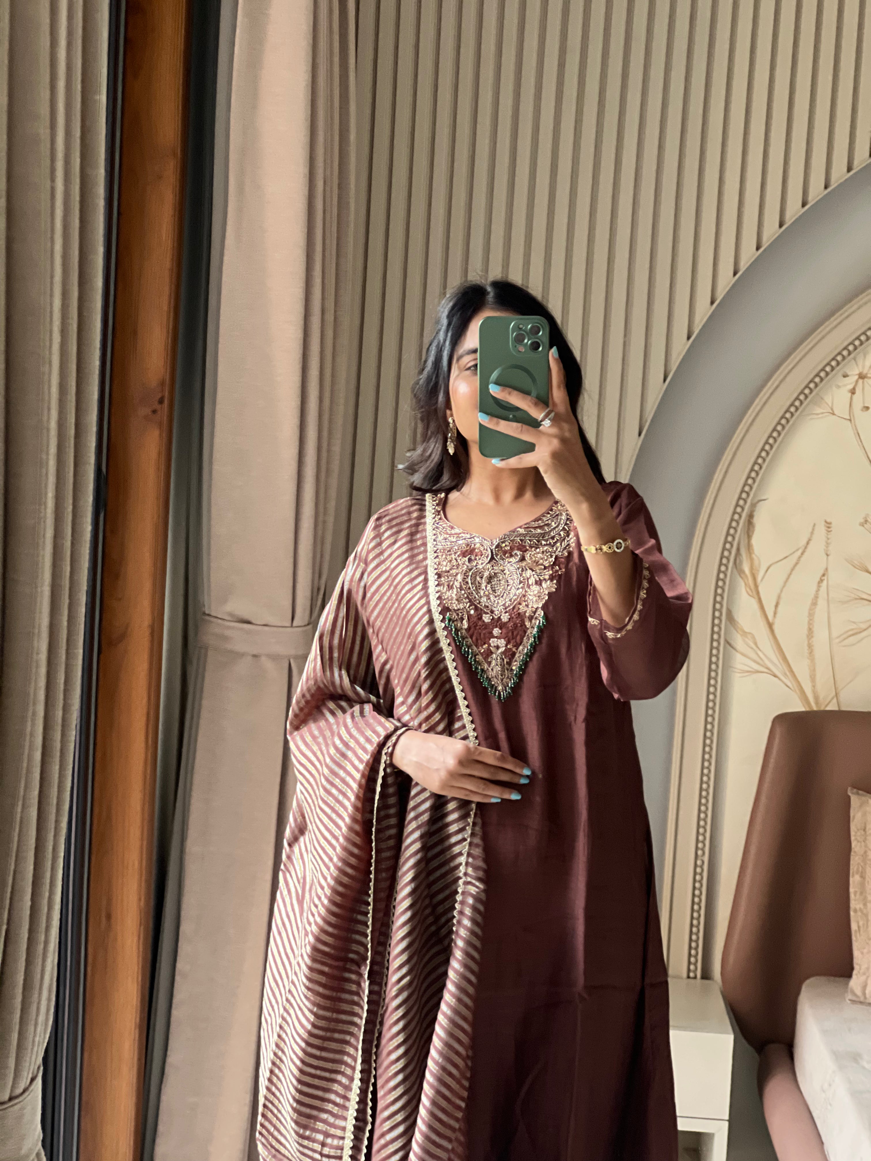 • Brown Mul chanderi suit set