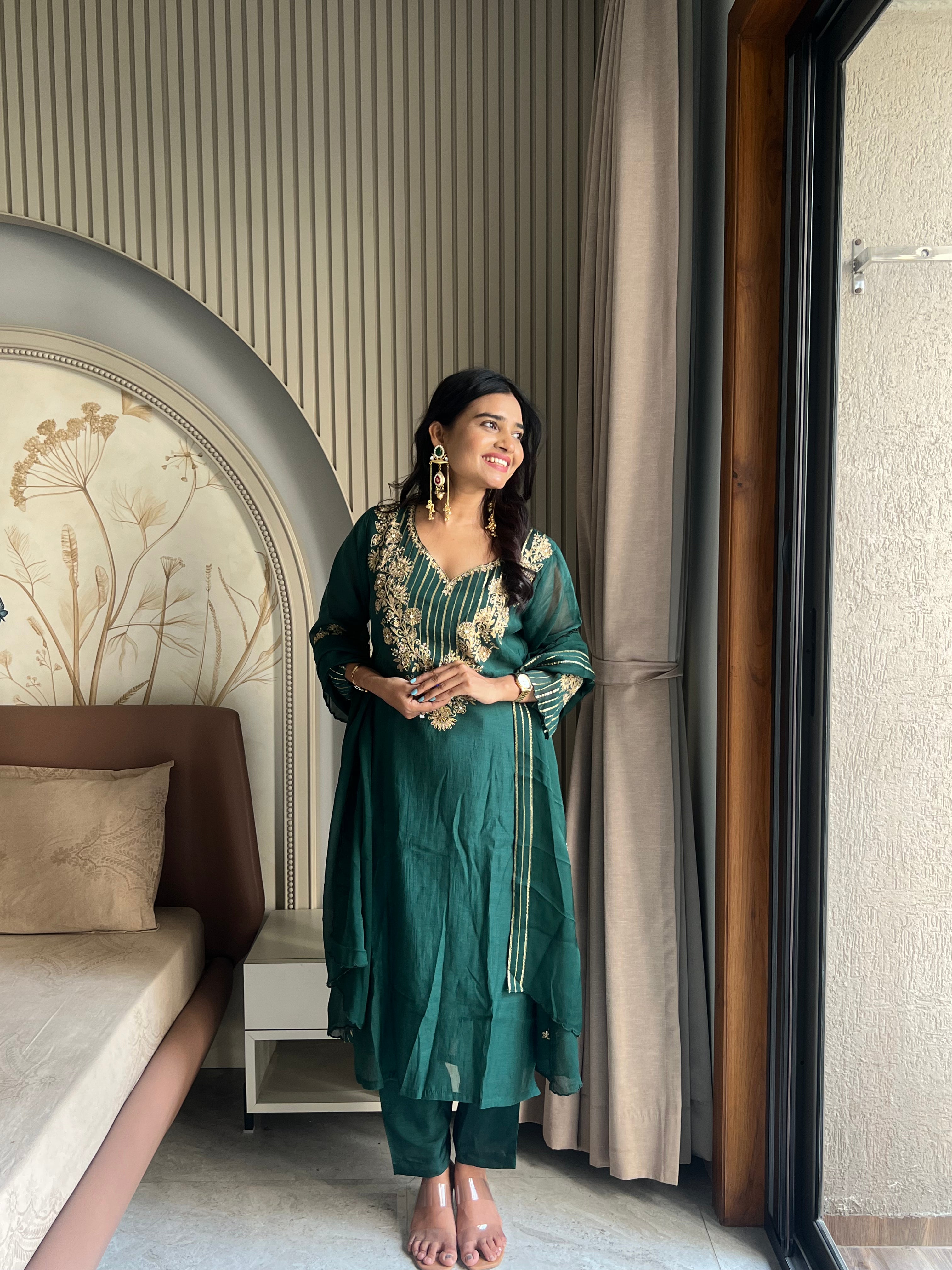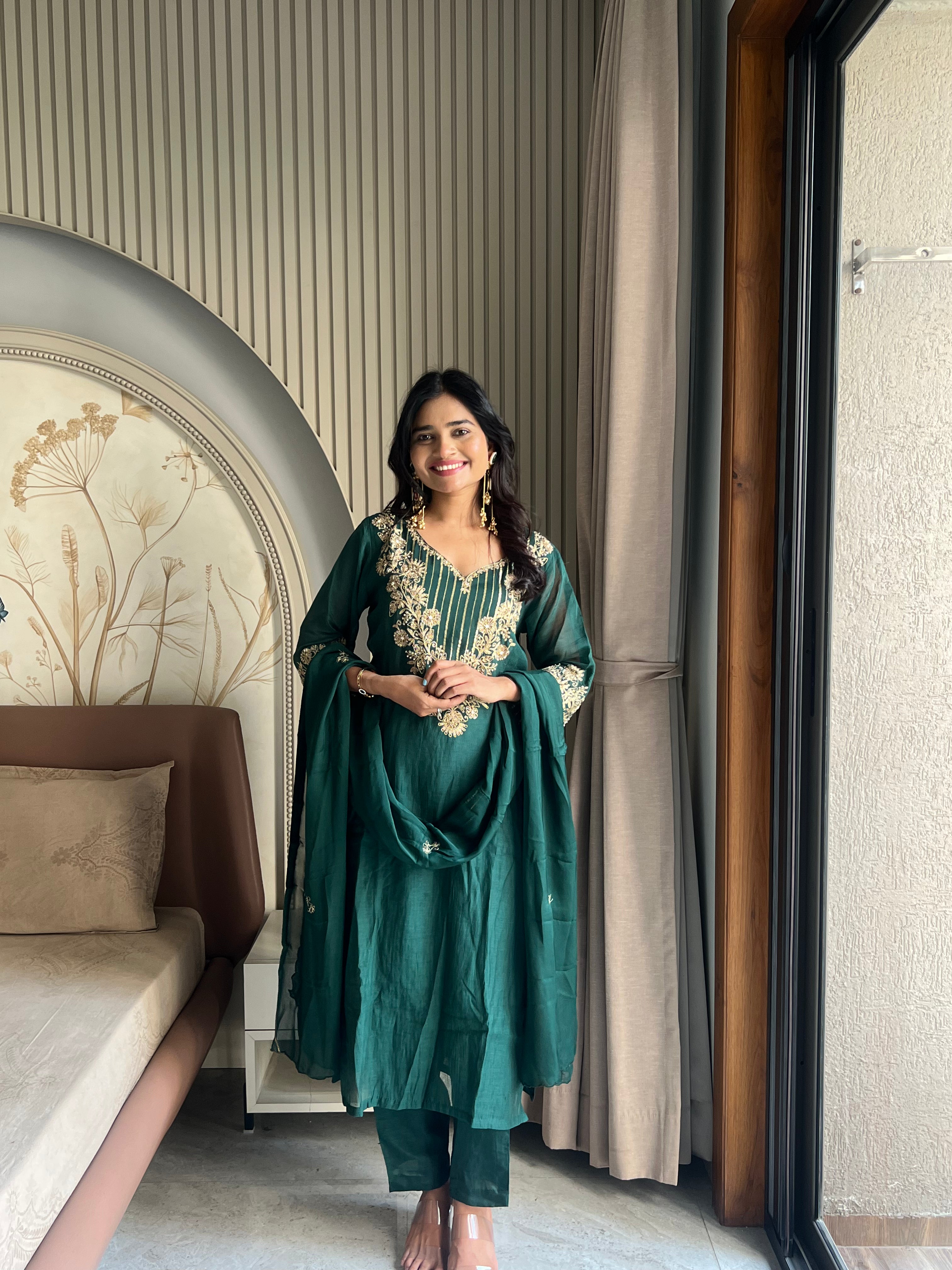 • Mul chanderi Green suit set