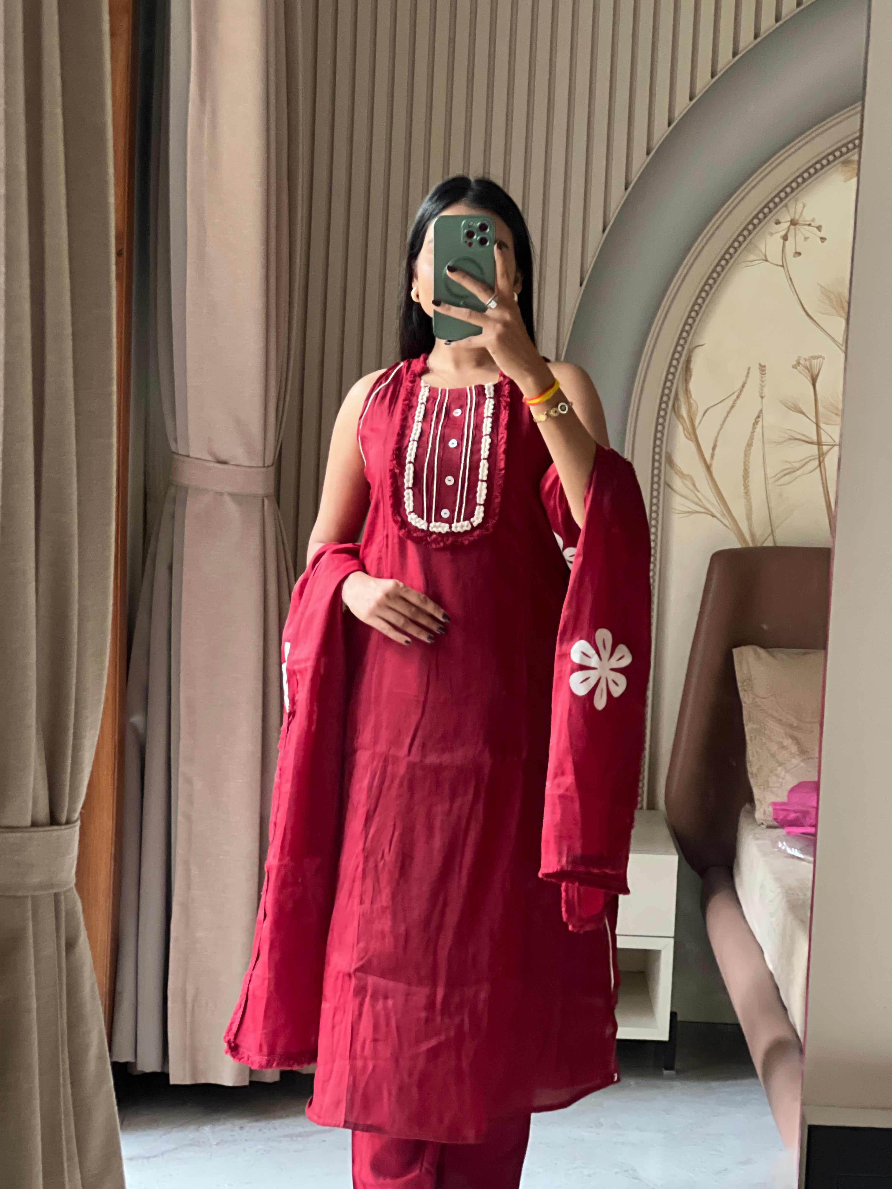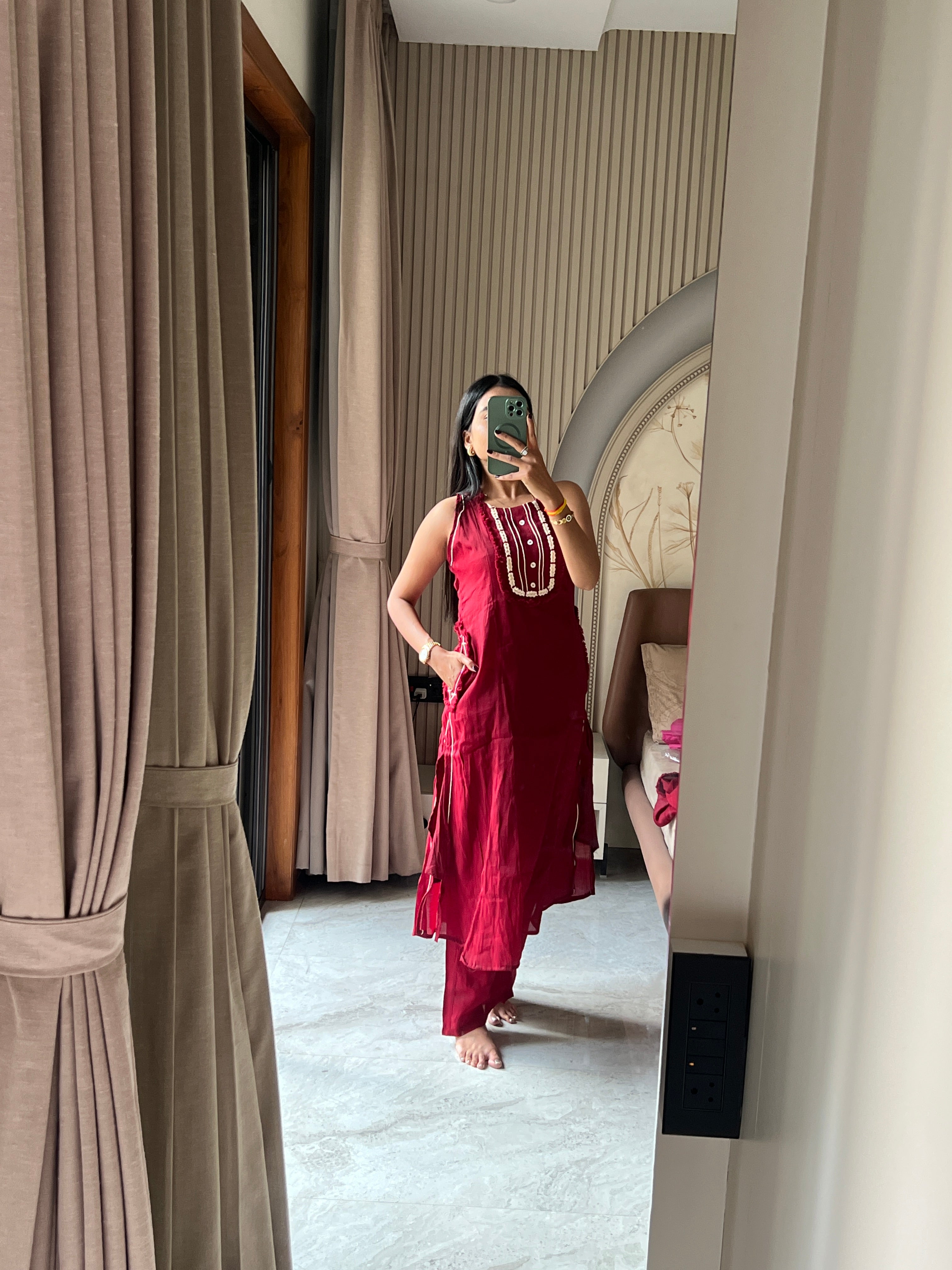 Maroon sleeveless 3 piece set Maroon sleeveless 3 piece set